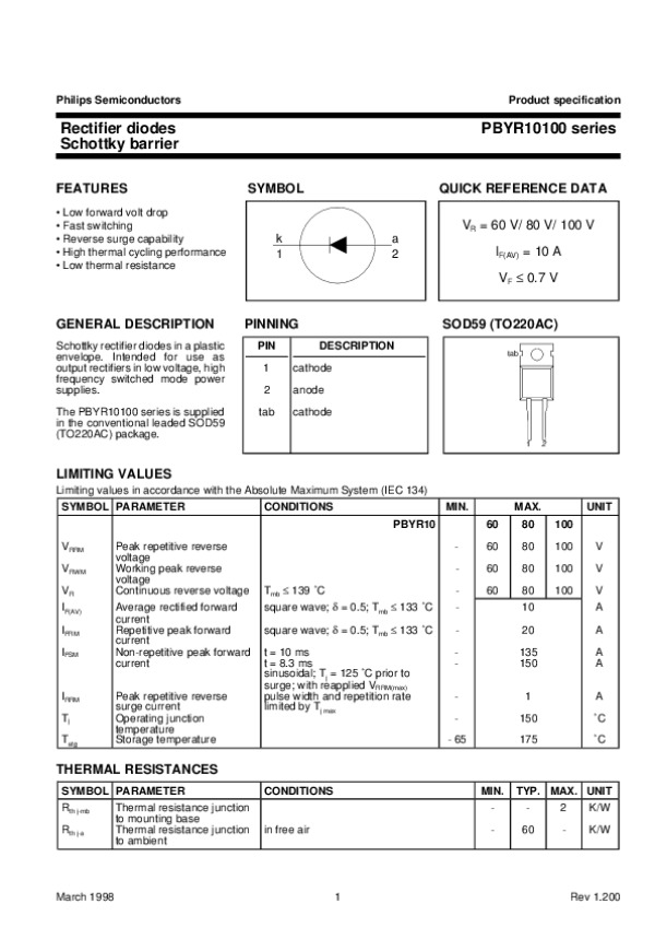 Datasheet PBYR10100SERIES2:
