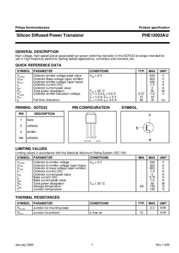 Datasheet PHE13002AU1: