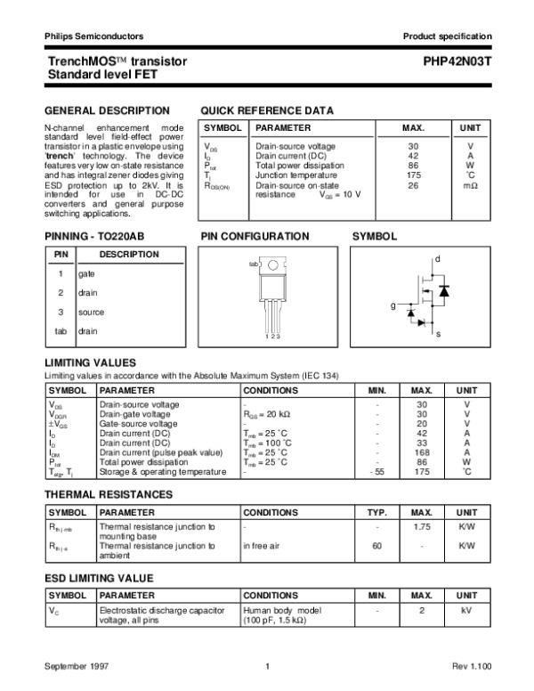 Просмотр технического описания на PHP42N03T1