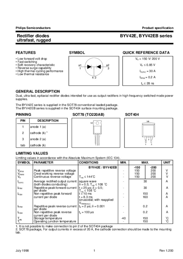 Datasheet BYV42ESERIES2: