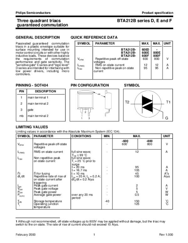 Datasheet BTA212BSERIESDEF3: