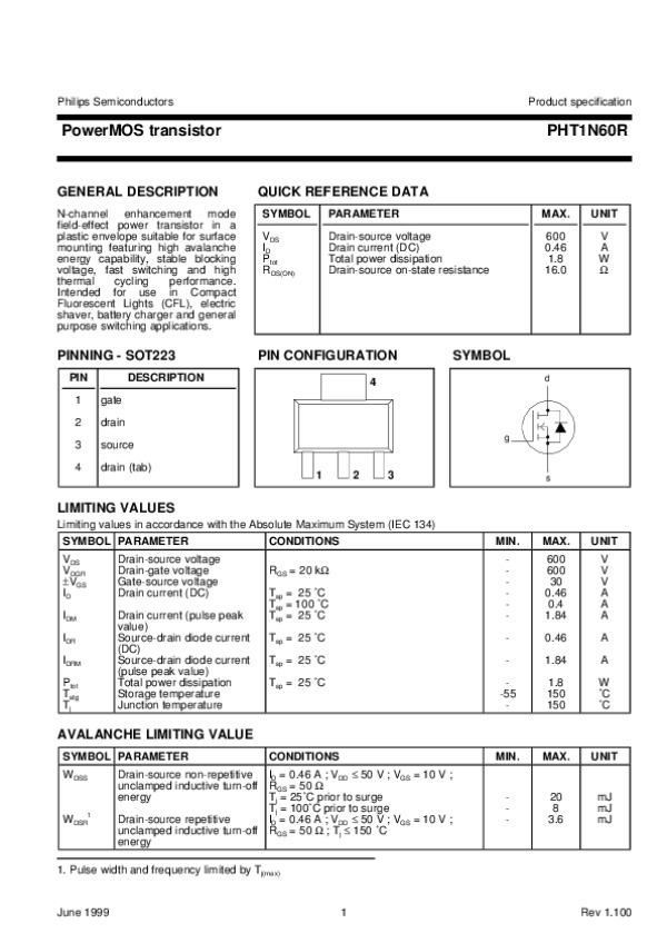 Datasheet PHT1N60R4: