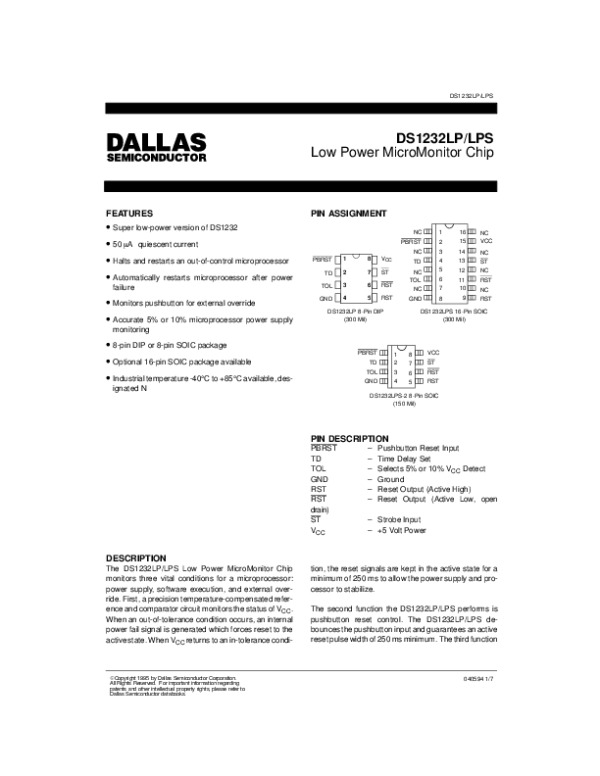 Datasheet DS1232LPS: