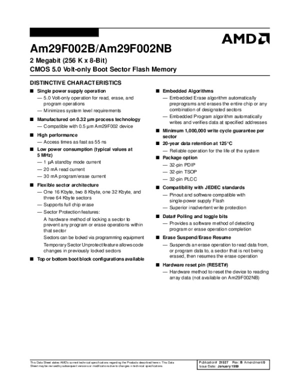 Datasheet AM29F002B,NB: