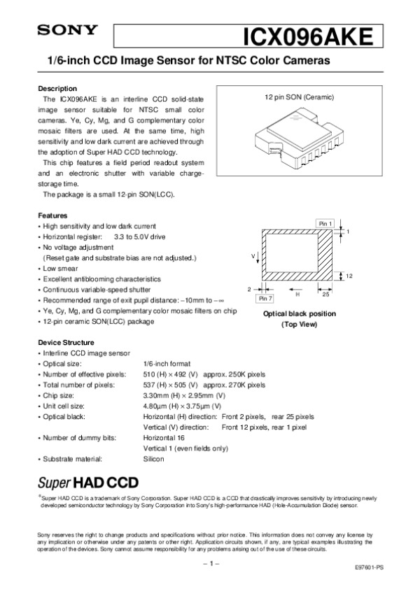 Datasheet ICX096: