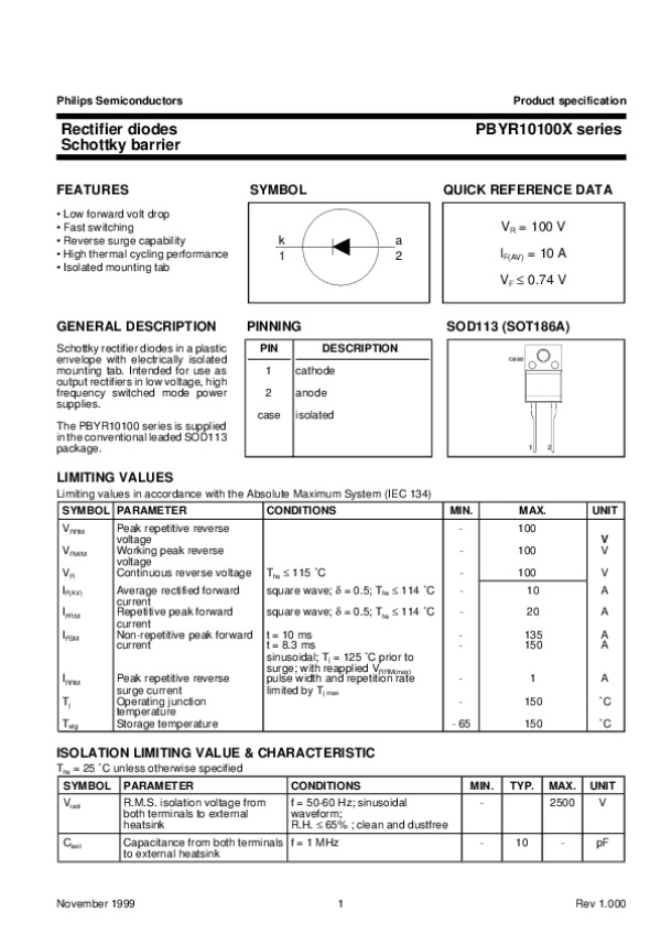 Datasheet PBYR10100XSERIES1: