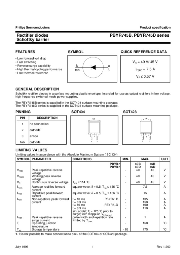Datasheet PBYR745BDSERIES3: