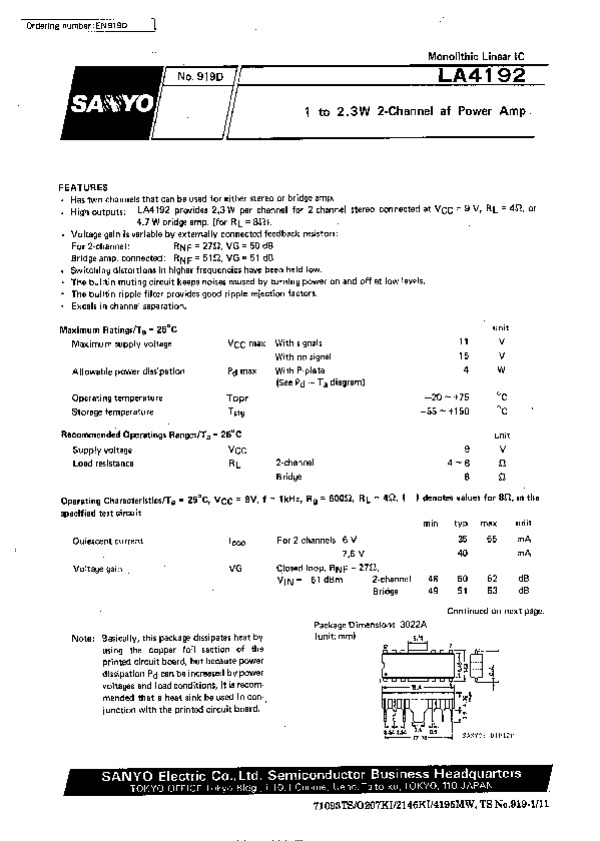 Datasheet LA4192: