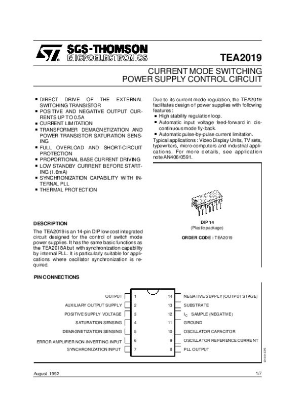 Datasheet TEA2019: