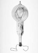 продемонстрировал лампочку накаливания с угольной нитью. Лампочка горела в
