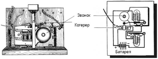 Попов был не только одним из первых в России, как выразился Столетов, «пропагатором герцологии», но и тем, кто впервые оценил практическое значение открытий Герца и начал искать пути их технического использования. Детектором электрических колебаний в приемнике Попова был когерер БрэнлиЛоджа. В свое время Брэнли писал: «Устройство можно вернуть в состояние плохой проводимости слабыми отрывистыми ударами по дощечке, которая поддерживает трубку». Лодж говорил: «Этот прибор, который я называю когерером, удивительно чувствителен как детектор герцевских волн». В опытах Лоджа когерер «чувствовал» влияние искры на расстоянии 40 ярдов (37 м). Лодж применял различные способы приведения когерера в рабочее состояние, в том числе и с помощью звонка смонтированного на одной доске с когерером. Однако Лодж не додумался до использования звонка в качестве регистратора поступившего сигнала и одновременно автомата для приведения когерера в рабочее состояние. Это сделал Попов. Можно сказать, что это был первый случай использования в радиотехническом устройстве электромеханической обратной связи. Кроме того Попов впервые применил антенну для улавливания электромагнитных волн.