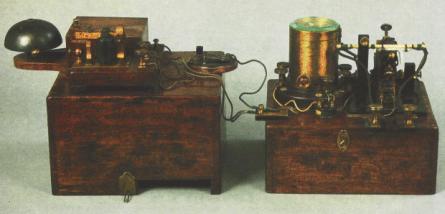 10 дюймовый искровой передатчик Маркони, 1901. С помощью такого передатчика был послан сигнал «SOS» с Титаника. Томас Эдисон, чей авторитет имел не меньший вес в научном мире, был более щедр в оценках: Я поражен! Я хотел бы встретиться с этим молодым человеком, у которого хватило дерзости на пересечение Атлантики электрической волной. Эдисон много читал о молодом итальянском гении и был в курсе экспериментов Маркони. В ответ на вопрос репортера, верит ли он сообщениям, Эдисон ответил: «Что!? Вы сомневаетесь! Если это говорит Маркони, то это правда!» В 1896 Маркони было всего 22 года, но он уже догонял Попова и в скором времени в значительной степени превзошел Александра Степановича, потому что имел больше поддержки и свободы. Маркони был скорее предпринимателем, нежели ученым. Общество жаждало вещей, а не теорий. И насколько аморфная Россия не заинтересовалась исследованиями Попова, настолько Запад заинтересовался исследованиями Маркони. Еще в ранней юности изумительная интуиция позволила итальянскому пареньку всерьез задуматься о возможности использования волн Герца для беспроводной связи. В двадцатилетнем возрасте на семейной вилле вблизи Болоньи (Италия) Маркони переоборудовал зернохранилище в лабораторию, где он, с несвойственным его возрасту упорством, день и ночь среди мотков провода, медных сфер, катушек Румкорфа, телеграфных ключей Морзе и электрических звонков проводил первые эксперименты с радиосвязью. Первые слабые сигналы можно было принимать на расстоянии сотен метров: от окна зернохранилища, где был помещен передатчик, до холма в конце сада, где размещался приемник. Три точки символа «S», посылаемые кодом Морзе, достигали приемника, и рабочий фермы махал носовым платком, чтобы подтвердить успешный прием. Но замыслы Маркони простирались за пределы сада, он хотел большего. Установив приемник на другой стороне холма (вне зоны прямой видимости) и поручив помощнику Мигнани следить за устройством, в апреле 1895 Гульельмо отстучал свое тестовое сообщение. Каково же было ликование молодого человека, когда он услышал грохот выстрела, подтверждающий прием. Отцовский дробовик возвестил, что радиосвязь возможна электромагнитные волны преодолели препятствие! Слишком мала мощность вибратора Герца для дальней передачи, а что если… Как привычны сегодня антенна и заземление родившиеся в старом зернохранилище в далеком 1895 году.