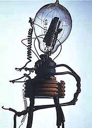 Дуговая лампа 1886. В 1900 уличные фонари в Лондоне, как и повсюду в Европе, были уже электрическими, но источниками света в них были далеко не лампы накаливания, так хорошо известные и привычные в наши дни. Хотя знаменитое изобретение Эдисона было уже сделано, но его лампы пока еще не обеспечивали достаточно количества света и, кроме того, были довольно дороги и недолговечны. Это было время электродуговых угольных ламп (непрерывной электрической искры), но у них имелся неприятный недостаток раздражающий, свистящий звук, издаваемый при горении. (Оказывается проблеме шума осветительных приборов уже более 100 лет. В частности, «свист» ламп дневного света в наше время также не доставляет радости.) Английский физик Вильям Дуддель, в поисках пути устранения звука, нашел способ… управлять его тоном (частотой). Продемонстрированный им в 1899 в Лондоне прибор управлялся клавиатурой, благодаря которой можно было изменять подаваемое на лампы напряжение и, таким образом, менять тон «пения» дуги. Это позволяло воспроизводить музыкальные композиции. Устройство оказалось довольно забавным развлечением. Дуддель не особо верил в перспективность изобретения, из-за чего даже не пытался запатентовать устройство.