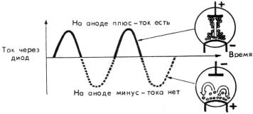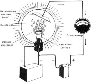 При изменении положения металлической пластины, изменялась интенсивность бомбардировки. Когда же вместо пластины в колбу был помещен металлический цилиндр, расположенный вокруг отрицательного контакта нити без соприкосновения с ней, то гальванометр зафиксировал наибольший ток. Флемингу стало очевидным, что металлический цилиндр «захватывал» заряженные частицы, которые испускала нить. Основательно изучив свойства эффекта, он обнаружил, что комбинация нити и пластины, названной анодом, могла использоваться как выпрямитель переменных токов не только промышленной, но и высокой частоты используемой в радио. Работа Флеминга в компании Маркони, позволила ему тщательно ознакомиться с капризным когерером, использовавшимся в качестве датчика волн. В поисках лучшего датчика, он пытался разрабатывать химические детекторы, но в какое то время ему пришла мысль: «А почему бы ни попробовать лампу?». Сначала он собрал колебательный контур, с двумя лейденскими банками в деревянном корпусе и с индукционной катушкой. Затем другую схему, которая включала электронную лампу и гальванометр. Обе схемы были настроены на одинаковую частоту.