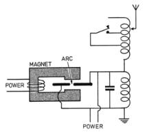 Телеграфон Поулсена, 1915. В 1903 Поулсен запатентовал «улучшенный дуговой генератор колебаний, использующий углеводородную атмосферу и магнитное поле» и первым предложил последовательное соединение дуговых ламп. В частности, улучшенная модификация генератора использовалась компанией «Telefunken». Построенная ею система в 1906 охватила 25 миль: «дуговые передатчики подключались последовательно по 6 генераторов при питании 220 В постоянного тока, по 12 при 440 В или по 24 при 880 В». Когда дуговой передатчик был представлен в Америке, то сразу получил там широкое распространение и составил серьезную конкуренцию передатчикам Фессендена. Дуговые передатчики мощностью до 500 кВт были испытаны американским флотом и получили очень высокую оценку. Хотя у них тоже было немало недостатков: большое количество побочных гармоник и шумов. Кроме того, они выделяли так много тепла, что требовалась водяная система охлаждения. Несмотря на это, в течение Первой Мировой войны на многих военных кораблях были установлены именно передатчики Поулсена. Первые телеграфные радиосистемы обходились искровыми передатчиками, для передачи же голоса требовались незатухающие колебания. Дуга Поулсена обеспечивала именно незатухающие колебания.