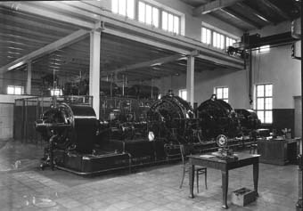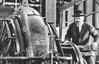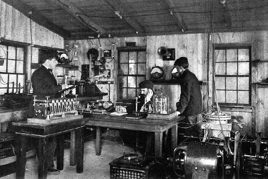 Лаборатория Фессендена, Брант Рок. Генератор (виден справа) созданный Александерсоном и Фессенденом обеспечивал мощность ок. 1 кВт при частоте 50 000 Гц.