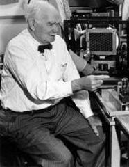 Др. Ф.Конрад, фото из газеты «The New York Times», 1930. Мы заранее условились, что питсбургская радиостанция пошлет выдержки из газет кодом (Морзе). Мистер Сарнов в качестве оператора около часа в моей спальне принимал информацию, объем которой был фактически идентичен объему сообщений переданных за один день британской компанией Маркони. На следующий день, на очередном заседании, представленные выдержки из газет произвели эффект разорвавшейся бомбы… …В то же время успех нашей демонстрации вызвал некоторое беспокойство мистера Сарнова относительно миллионных проектов длинноволновых передатчиков, которые строились «RCA» в Лонг-Айленде. По всей видимости, проблема была решена, и строительство было свернуто. Коротковолновые передатчики заменили проектируемую длинноволновую систему. Через неделю после смерти Конрада, по радио, которое он сделал массовой культурой, на весь мир транслировался запрос президента Рузвельта Конгрессу США, с требованием объявить войну Японской Империи. Тремя днями позже, в прямом эфире Конгресс США обсуждал второй президентский запрос, об объявлении войны Германии и Италии. Радио, благодаря усилиям Конрада, стало средством массовой информации, которая позволяет слышать события прежде, чем о них напишут. |
