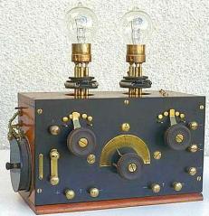 У радиоприемника, конец 1920-х. Листая страницы истории радио нельзя не вспомнить о печальных моментах в развитии радиовещания. 30 января 1933 началась «коричневая» полоса в истории немецкого радио. Устное слово должно было помочь национал-социалистам завоевать не только Германию, но и весь мир. Девиз национал-социалистов гласил: «Радио в каждый дом!». Летом 1933 г. 28 ведущих радиофирм Германии в принудительном порядке должны были начать работы по созданию простого, дешевого и добротного радиоприемника. «Volksempfaenger» «массовый приемник» был рассчитан на прием лишь местных радиостанций. Ну, а чтобы подстраховаться, власти издали закон, по которому просто-напросто запрещалось прослушивание зарубежных голосов. Нарушителям предъявлялось обвинение в измене Родине и следовало наказание: концлагерь, тюрьма, исправительные работы. Возможно, у некоторых читателей приведенные факты вызовут воспоминания не о далеких 30-х годах Германии, а о гораздо более позднем периоде и в своем Отечестве. Не все еще забыли как по вечерам, одев наушники или прижав приемник к уху (чтобы не узнали соседи), сквозь треск помех и рев «глушилок» мы пытались услышать от различных «Голосов» и «Свобод» не то чтобы правду, но хотя бы альтернативу советской пропаганде. Но вернемся в Германию. Народ подчинился, и число радиослушателей с 1933 по 1943 возросло с 4 до 16 миллионов. Захватническая политика Вермахта позволяла расширять сеть вещания за счет радиостанций на оккупированных территориях. К концу 1939 у Германии было уже более 35 радиоцентров, мощностью до 150 кВт. Большая часть Европы была вынуждена слушать идеологические воззрения национал-социализма. Радиовещания великая сила и при умелом использовании может стать грозным оружием. Дуговой телефон, аудион и операЛи де Форест (Lee De Forest), 18731961
