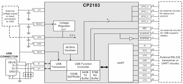 CP2103 - преобразователь интерфейса USB 2.0 в UART