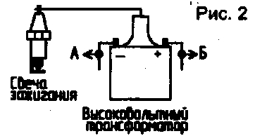 Если зажигание контактное, вход тахометра подключается к точке А. Для бесконтактного зажигания - к точке Б.