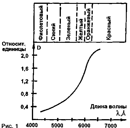 ![]() Puc.1 Электрический противоослепляющий фонарь устанавливается на уровне основного поля зрения водителя, с левой стороны лобового стекла, что практически не мешает водителю при движении. Свет от фонаря распространяется параллельно лобовому стеклу и не попадает в глаз водителя, для этого у фонаря имеется светозащитный козырек. При включении фонаря происходит поглощение значительной части лучистого потока света фар, уменьшая засветку сетчатки глаза. Кроме того, использование в фонаре синего или зеленого светофильтра дает возможность контролировать обстановку на дороге, поскольку в ночное время глаза человека наиболее чувствительны к синим и зеленым лучам (рис.2) видимого спектра [1].