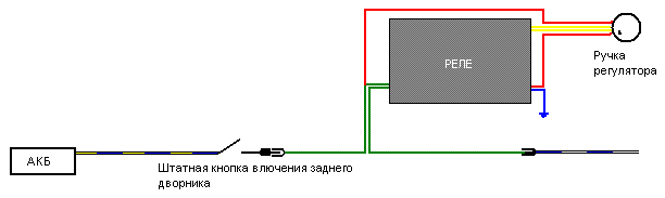 Чтобы не отвлекаться от дороги и все время нажимать кнопку, можно собрать простенькое устройство: реле для заднего дворника с паузой. Паузу можно регулировать ручкой на панели приборов. Схема очень простая и не требует какой-либо настройки. Детали распространенные.