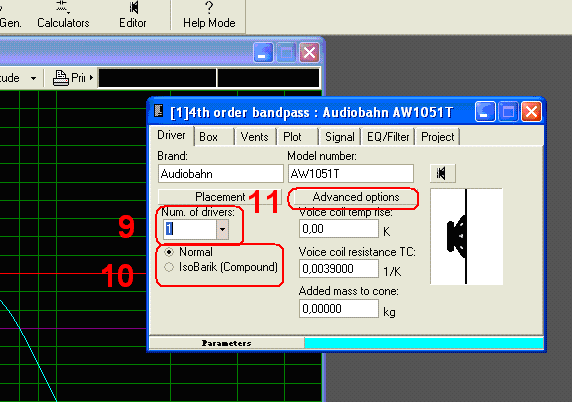 Выбираем какой тип нам подходит и нажимаем дальше (Next) Далее программа предлагает способ оформления АЧХ различными способами. Я не заостряю внимания на этом пункте и нажимаю далее. Далее будем рассматривать программу на примере Банд пасс 4ого порядка. Вкладка Driver.