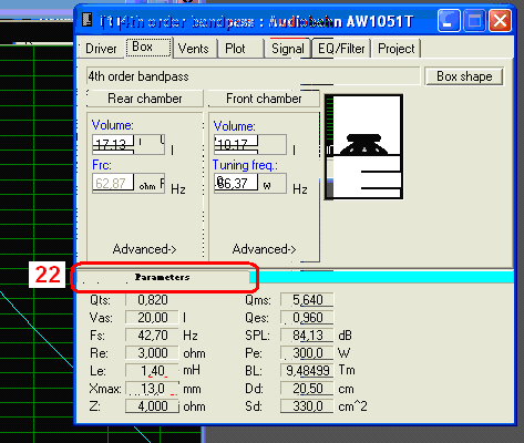 22. Нажав эту кнопку можно увидеть Т/С параметры которые надо ввести в WinISD 0.44.