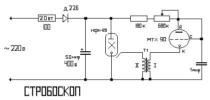 Самый лучший световой эффект для вечеринки: стробоскоп. За последние 3 года собрал примерно штук 15-18 стробоскопов, все в восторге...хотя некоторым не нравится качество исполнения...Хмм...за 100 крон (цена одних из моих первых) вполне приемлемая наработка 10-... дискотек. Схема стробоскопа Важные особенности При сборке потребуется учесть несколько