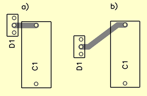 Блок питания разработан для симметричной нагрузки, у которой потребляемые токи по плюсу и по минусу равны – усилители НЧ. Неравномерная нагрузка вызывает перенапряжение на одном из плеч и блок может уйти в защиту. При подборе деталей не забудем о требованиях к их параметрам и конструкции устройства. Выпрямительные диоды должны быть с обратным напряжением не менее 200Вольт, конденсаторы С11 и С12 умышленно выбраны на напряжение 50Вольт, т.е. крупногабаритные – дело в том, что они будут нагреваться, на частотах около 20-30кГц у них минимальный импеданс, на котором происходит эффективное подавление выбросов напряжения, и, как следствие – их нагрев. Обращайте внимание на внешний вид компонентов, особенно микросхемы и выпрямительных диодов – поцарапанный, невзрачный, некрасивый корпус говорит либо о некачественном изготовлении детали, либо о «левом» производстве. Не используйте конденсаторы серии К73-17, они часто выходят из строя. Микросхему могут выпускать либо фирма Fairchild , либо Samsung (SEC) Схемы, в которых есть трансформаторы, очень критичны к фазировке их обмоток. При фазировке обмоток требуется сделать так, чтобы начала и концы обмоток подключались к своим точкам в схеме. Если фазировка будет неверной, то обмотки будут работать в противофазе, что нарушит работу схемы и может повредить компоненты. Начала обмоток на схеме помечаются точкой у одного из вывода обмоток. Это как у динамиков – выводы помечаются плюсами. Нам с вами лучше всего мотать обмотки как на рисунке 2 – либо как вариант 1, либо как вариант 2, но не смешивая эти варианты . ![]() Так нам легче будет разобраться, какой вывод будет началом, а какой концом. Пример фазировки обмоток – на рисунке 3, точками показаны начала обмоток. ![]() Трансформатор намотан на сердечнике Ш12Х12 из феррита М2000, с зазором в магнитопроводе 0,2мм. Первичная обмотка 36витков, поделена на две равные части. Одна часть наматывается в первый слой, вторая – в последний. Между ними располагаются вторичные обмотки: выходная - 7+7витков в два провода каждая, обмотка питания микросхемы – 7 витков. Все обмотки намотаны проводом диаметром 0,6мм. Зазор делаем с помощью бумаги, наклеиваем ее на торцы феррита, складываем всё вместе с катушкой и проклеиваем магнитопровод суперклеем. Блок, собранный без ошибок в монтаже, начинает работать сразу и без глюков. Тем не менее, чтобы обезопасить себя от возможных ошибок, проведем первое включение устройства пошагово. Вместо предохранителя включим обычную лампу 220В 100Вт. Она предотвратит возможную поломку микросхемы. Отпаяем стабилитроны у тиристоров. К выходу блока питания между “+” и “–“ подключим нагрузку – нихромовую спираль 30-40 Ом мощностью не менее 100Вт. Ее мы будем использовать только для проверки блока питания. Такие спирали продаются в магазинах для ремонта электрообогревателей, либо спиралька отдельно, либо в стеклянной трубке. Нам нужна только часть спиральки. Нужное сопротивление отмерим тестером и подключим к выходу блока питания. Не забываем о том, что спираль подключается между “+” и “–“ источника, а замеры напряжения мы будем вести от общего провода (GND). Подключим тестер к “+” выходу блока питания и включим блок в розетку. Через секунду на выходе должно установиться напряжение +16,5вольт. Ждем секунд 5, выключаем блок и смотрим нагрев деталей. Если есть подозрите