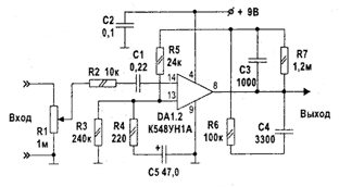 сигнала. Усилитель собран на микросхеме К548УН1А