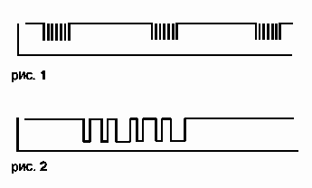 «Грубый» способ дешифровки команд пульта ДУРадиоконструктор 2006 №3Идея найти способ управления при помощи стандартного пульта чем-то еще, кроме предназначенного для него телевизора, давно овладела умами «творческой молодёжи» любого возраста. Что подтверждается публикациями самых различных схем, идей и способов дешифровки команд пульта ДУ, среди которых: простое распознавание по времени удержания кнопки нажатой, использование схем, подсчитывающих число импульсов кодовой посылки за единицу времени, программные дешифраторы на основе микроконтроллеров, однокомандные системы, реагирующие на сам факт наличия модулированного ИК-сигнала. Хочу предложить свой вариант простого дешифратора для «грубой дешифровки» команд пульта ДУ. «Грубой», - потому что этот способ не позволяет распознать все множество команд, которые способен передавать пульт. Он приближенно идентифицирует команды разбивая их на группы. И затем, каждой группе присваивает определенную функцию. В результате, например, пультом, содержащим несколько десятков кнопок, можно управлять четырьмя - пятью объектами. Идея состоит вот в чем. Если посмотреть осциллографом форму импульсов на выходе стандартного фотоприемника (рис.1) во время приема команды, то можно увидеть, что команда состоит из одинаковых командных посылок, повторяющихся с частотой около 10 Гц в течение всего времени удержания кнопки пульта нажатой. После отпускания кнопки пульт завершает последнюю командную посылку и прекращает передачу сигнала. Каждая командная посылка (рис. 2) состоит из некоторого количества импульсов, причём, это количество импульсов одинаково для всех команд определенного типа пульта. Поэтому, идентифицировать команды, подсчитывая импульсы в командной посылке невозможно. Кроме того, каждая командная посылка занимает одно и то же время, так что, идентификация по её длительности или по частоте импульсов так же оказывается невозможной.