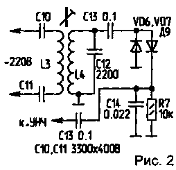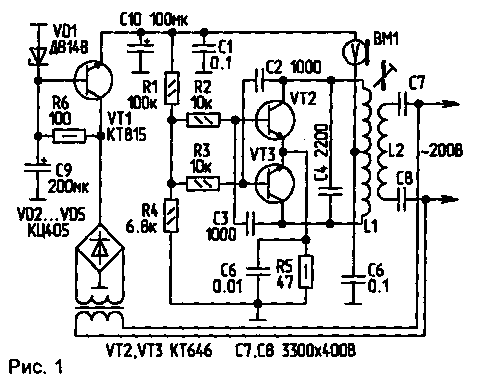 секции и половина — в другой. Для увеличения дальности действия можно применить УВЧ в приемнике, а также усилитель мощности в передатчике. Для более качественной модуляции можно применить модулятор на транзисторах, желательно с микрофонным компрессором. Не следует сильно увеличивать мощность, так как это приводит к появлению помех в аппаратуре, питаемой от сети. Не следует также повышать частоту выше 150 кГц, так как это приводит к появлению помех в эфире. РАДИОЛЮБИТЕЛЬ 7/97, с.16.