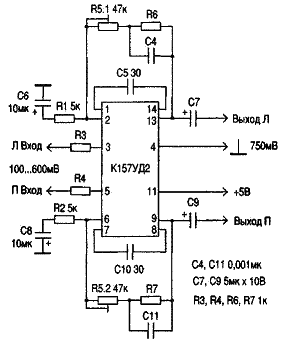 Любителям легкого акцента на ВЧ могу рекомендовать подключить параллельно этим резисторам керамические конденсаторы емкостью 0,022...0,033 мкФ - точное значение зависит от сопротивления ваших телефонов, их индуктивности и вашего вкуса, поэкспериментируйте сами.