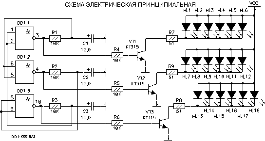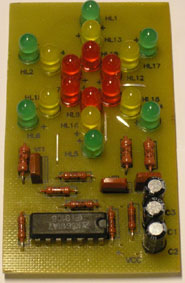 Устройство для создания эффекта огней бегущих из центра к краям солнышка. Колво светодиодов - 18 шт. Uпит.= 3...12В.