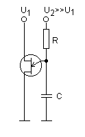 Применение дополнительного источника повышенного напряжения позволяет существенно увеличить номинал токозадающего резистора, что эквивалентно заряду от генератора тока. Недостаток этого способа - необходимость применения дополнительного источника. Линеаризация с помощью конденсаторной вольтдобавки "вольтдобавки" (следящей обратной связи):