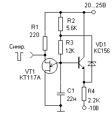 Введение резистора R1 позволяет использовать базу2 для синхронизации выходного напряжения. Возможный вариант стабилизации зарядного тока со следящей обратной связью с помощью стабилитрона: