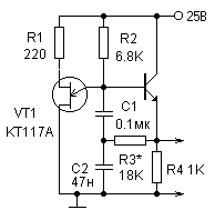 транзистора VT2 h21э=50, R2=1кОм. Тогда Rн=(h21э+1)R2