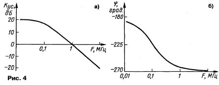 Отсюда следует вывод, что на частотах выше полосы эффективного действия ООС стопроцентная обратная связь ужесточает требования к перегрузочной способности каскадов, которая должна быть очень высокой, а усиление на этих частотах для всех каскадов — предельно низким [1]. Здесь следует обратить внимание на то, что стопроцентная ООС на ВЧ в инвертирующих усилителях (каскадах) обладает очень ценным свойством, фактически образуя фильтр низких частот.