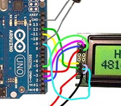 На картинке ниже, макет присоединения Ниже представлен скетч для Arduino. Значение контрастности на ШИМ-выходе устанавливается при инициализации программы, однако вы можете доработать проект, сделав внешнее управление контрастностью. К примеру сделав 2 кнопки + и -, соответственно внеся необходимые изменения в программу. /* Демонстрация работы с 16x2 LCD дисплеем. Библиотека LiquidCrystal работает со всеми LCD совместимыми с Hitachi HD44780. Данный скетч отображает на LCD "Hobbytronics". Скетч основан на оригинальном скетче Arduino http://www.arduino.cc/en/Tutorial/LiquidCrystal с модификациями, позволяющими вручную устанавливать контрастность дисплея Схема подключения: * LCD RS пин к цифр. выходу 12 * LCD Enable пин к цифр. выходу 11 * LCD R/W к Общему * LCD VO пин (пин 3) к ШИМ-выходу 9 * LCD D4 пин к цифр. выходу 5 * LCD D5 пин к цифр. выходу 4 * LCD D6 пин к цифр. выходу 3 * LCD D7 пин к цифр. выходу 2 */ #include Оригинал статьи на английском языке (перевод Колтыков А.В.)