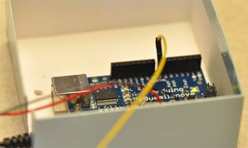 Сборка парктроника1. Приклейте плату Arduino ко дну ящика при помощи клея или силикона и подведите питание к контроллеру.