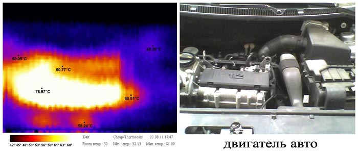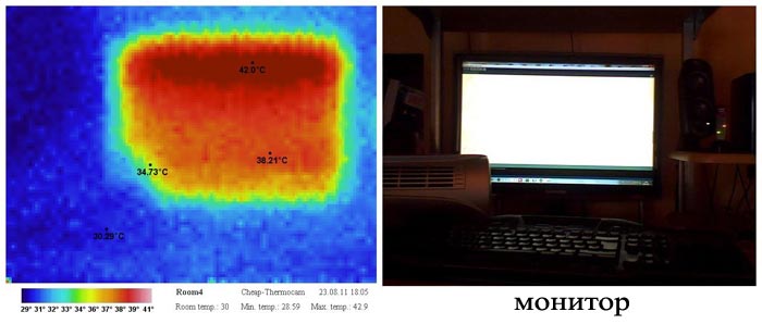 Тепловизор - прибор для измерения распределения температуры поверхностей, бесконтактным, визуальным способом. Как правило, карта распределения температуры отображается на встроенном в тепловизор цветном дисплее (или последующая передача данных в компьютер) в виде цветного изображения, где красный цвет обозначает наиболее высокотемпературные участки, а черный или синий - низкотемпературные участки. Такие приборы стоят очень дорого (несколько тысяч долларов) и позволяют определять температуры динамических (движущихся объектов) в режиме реального времени.