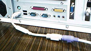 После того, как все собранно, разрежьте обычный PS/2 кабель пополам и в разрыв кабеля припаяйте плату кейлоггера.