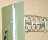 Круговая поляризация обеспечивает наилучшее прохождение в условиях городской застройки. Видимо здесь в полной мере проявляется классическое свойство штопора. Запитывается данная антенна через кабель волновым сопротивлением 75 Ом. Подстройку резонансной частоты производят сжатием или растяжением витков антенны, а при сильном отклонении резонансной частоты от требуемой - укорочением длины проводника. Все параметры спиральных антенн получены экспериментально. Диаметр спирали - 100мм;