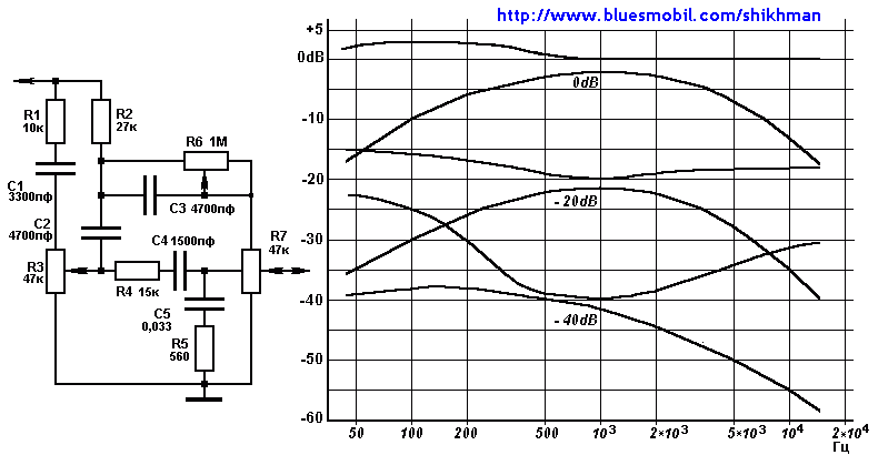Тонкомпенсированный регулятор громкости, совмещенный с регуляторами тембра