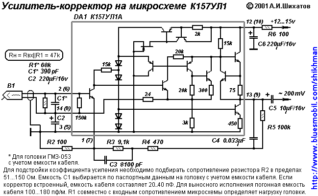 Усилитель-корректор на К157УЛ1 для магнитного звукоснимателя