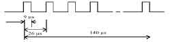 Длина импульсов и промежутки между ними по 0.9мс или 1.8