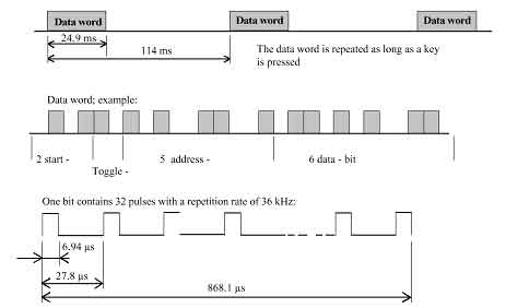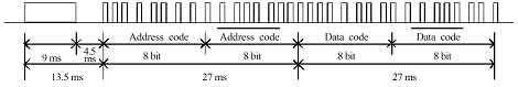 Модуляция Pulse-distance. Сначала идут старшие биты,