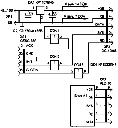 Вместо указанных на схеме оптронов U1, U2 можно применить сдвоенный прибор TLP521-2. Конденсаторы С2, СЗ — К50-35 или иные малогабаритные. Конденсаторы С1, С4 — керамические. Резисторы - любые, предназначенные для поверхностного монтажа (типоразмер 1206). Тип разъема XS1 зависит от применяемого удлинительного кабеля (на схеме указан для стандартного кабеля принтера). Печатную плату изготавливают индивидуально для имеющейся модели мультиметра и размещают внутри него. Микросхемы DD1—DD3 монтируют на поверхность печатной платы с обеих сторон. На той же печатной плате могут располагаться элементы устройства, показанные на рис. 3. Вилку ХР4 устанавливают непосредственно на корпусе мультиметра. Можно использовать импортный аналог регистра КР1564ИР9 — 74НС165 в корпусе для поверхностного монтажа. Тогда микросхемы DD1—DD3 монтируют на односторонней печатной плате размерами 50x13 мм, а остальные элементы — на отдельной печатной плате. Однако из-за уменьшенного шага выводов (1,27 мм) монтаж значительно усложняется. В стабилизаторе напряжения DA1 возможно применение 78L05, КР1157ЕН5А или КР1157ЕН502А с учетом различия в нумерации выводов. Скачать архив программного обеспечения для сопряжения цифрового мультиметра с компьютером. В. Степнев Литература: 1. Бирюков С. Применение АЦП КР572ПВ5. — Радио, 1998, № 8, с. 62-65.