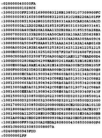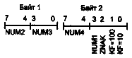 Работает микроконтроллер от внутреннего тактового генератора 4 МГц, для которого предусмотрена программная калибровка. Также в блоке можно использовать микроконтроллер PIC12F675, идентичный PIC12F629 с дополнительным четырехканальным АЦП (10 бит). Остальные параметры этих микроконтроллеров и техническую документацию можно найти в [5, 6]. Программирование можно произвести с помощью программатора ЕРЮ. Прошивка приведена в таблице 1. Все элементы блока по схеме рис. 3, за исключением разъема ХР4, можно разместить внутри корпуса мультиметра, соединяемого с СОМ портом обычным модемным кабелем. Информационные данные выдаются двухбайтными пакетами по запросу. Запрос через оптопару U3 формируется на выводе 7 DD5 перепадом сигнала из высокого в низкий уровень, что соответствует передаче компьютером нулевого байта. После получения запроса в течение 3 мс происходит загрузка данных из регистров DD1—DD3 и их преобразование. Далее происходит передача первого байта (2 мс для скорости 4800 бит/с) и выдерживается пауза в 3 мс. После этого передается второй байт, и блок передачи данных выключается до следующего запроса. Формат передаваемых байтов показан на рис. 4. NUM1 — старший разряд ЖКИ, NUM4 — соответственно младший разряд. KF — коэффициент, на который делится полученное значение индикатора. Например, показания индикатора (-12,36) будут соответствовать: NUM = 1, NUM2 = 2, NUM3 = 3, NUM4 = 6, KF = 100, ZNAK = 1.